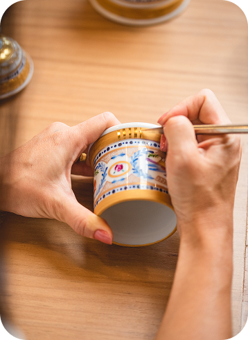 desde a escolha da peça a ser pintada, o desenho, a pintura e a finalização que será feita após a queima da peça.